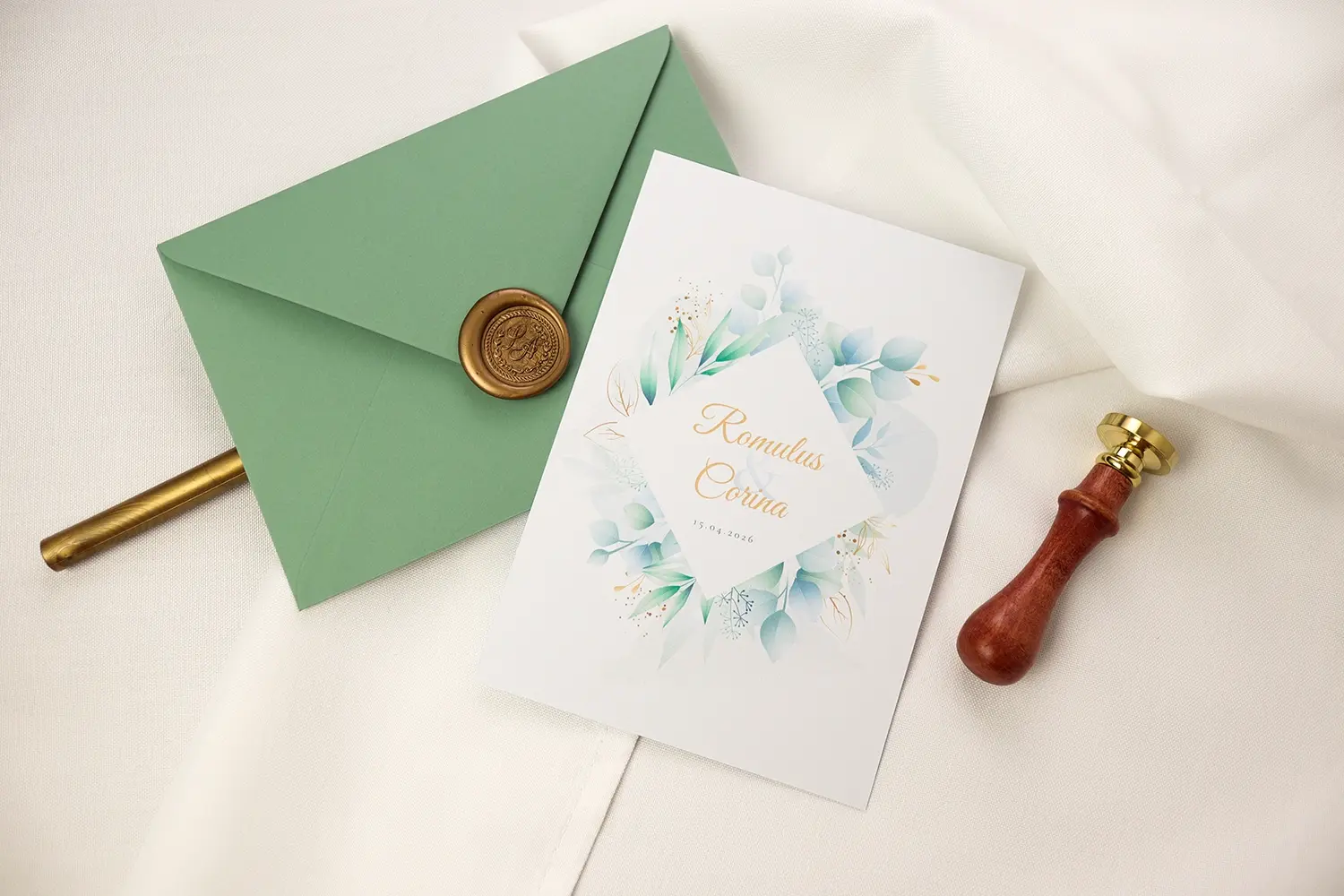 O invitație delicată, cu nuanțe pastelate și accente botanice, perfectă pentru o nuntă ce emană naturalețe și finețe.