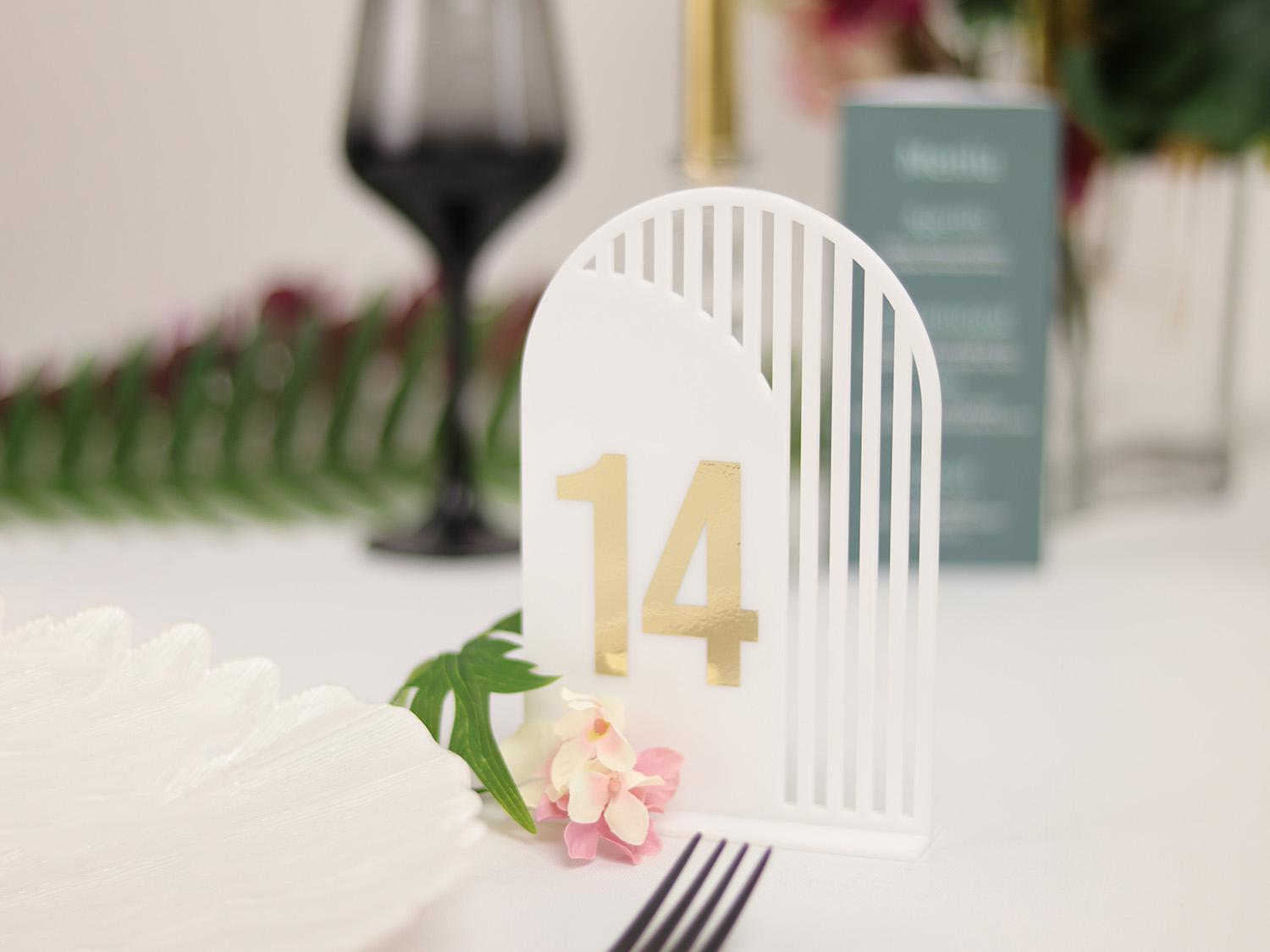 Adaugă un plus de eleganță și stil decorului de nuntă cu numerele de masă din plexiglas semioval asimetric. Designul modern, cu linii fluide și finisaj transparent, se potrivește perfect atât pentru evenimente sofisticate, cât și pentru nunți cu tematică minimalistă sau boho-chic.