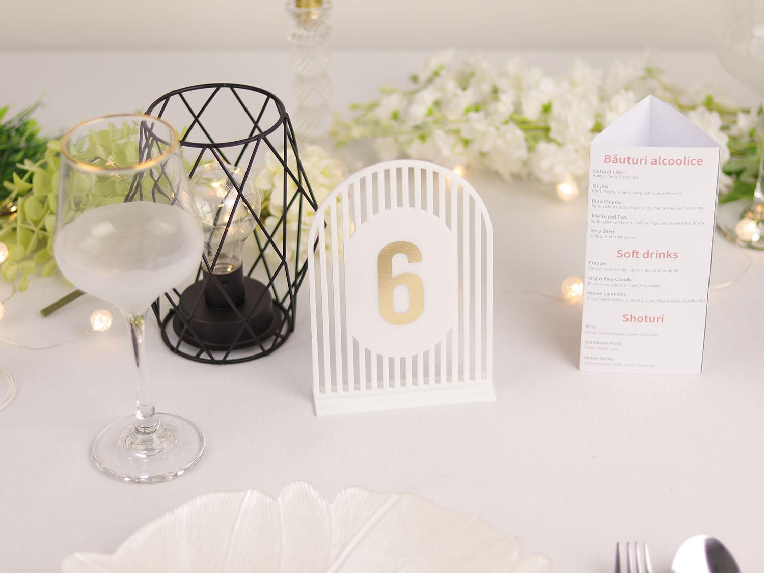 Creează un decor elegant și armonios cu aceste numere de masă, perfecte pentru a adăuga o notă de lux și stil evenimentului tău.