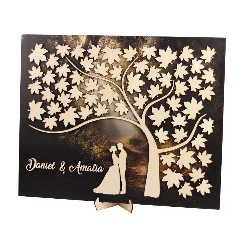 Înlocuiește guestbook-ul clasic cu o amintire vie și plină de simbolism! Acest panou guestbook alternativ, decorat cu frunze pe care invitații pot semna, devine o piesă centrală de decor și o mărturie unică a iubirii voastre. Dimensiunea de 50 cm x 40 cm este ideală pentru a aduna urările celor dragi, transformându-le într-un tablou ce vă va aminti mereu de ziua voastră specială.